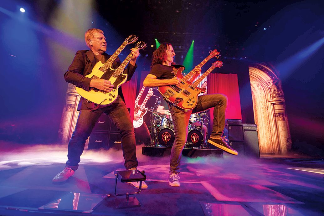 Lifeson has faced some serious health crises. He receives injections for psoriatic arthritis, and he was hospitalized for anemia from bleeding ulcers a few years ago, receiving blood transfusions. For years, too, he had considerable trouble breathing, feeling like he could never quite fill his lungs. When he underwent recent ulcer surgery, his doctor discovered the problem. "My stomach was behind my heart, pushing against my lung," he says. Everything is now back in place, and he's thrilled at the prospect of playing shows without gasping for air.