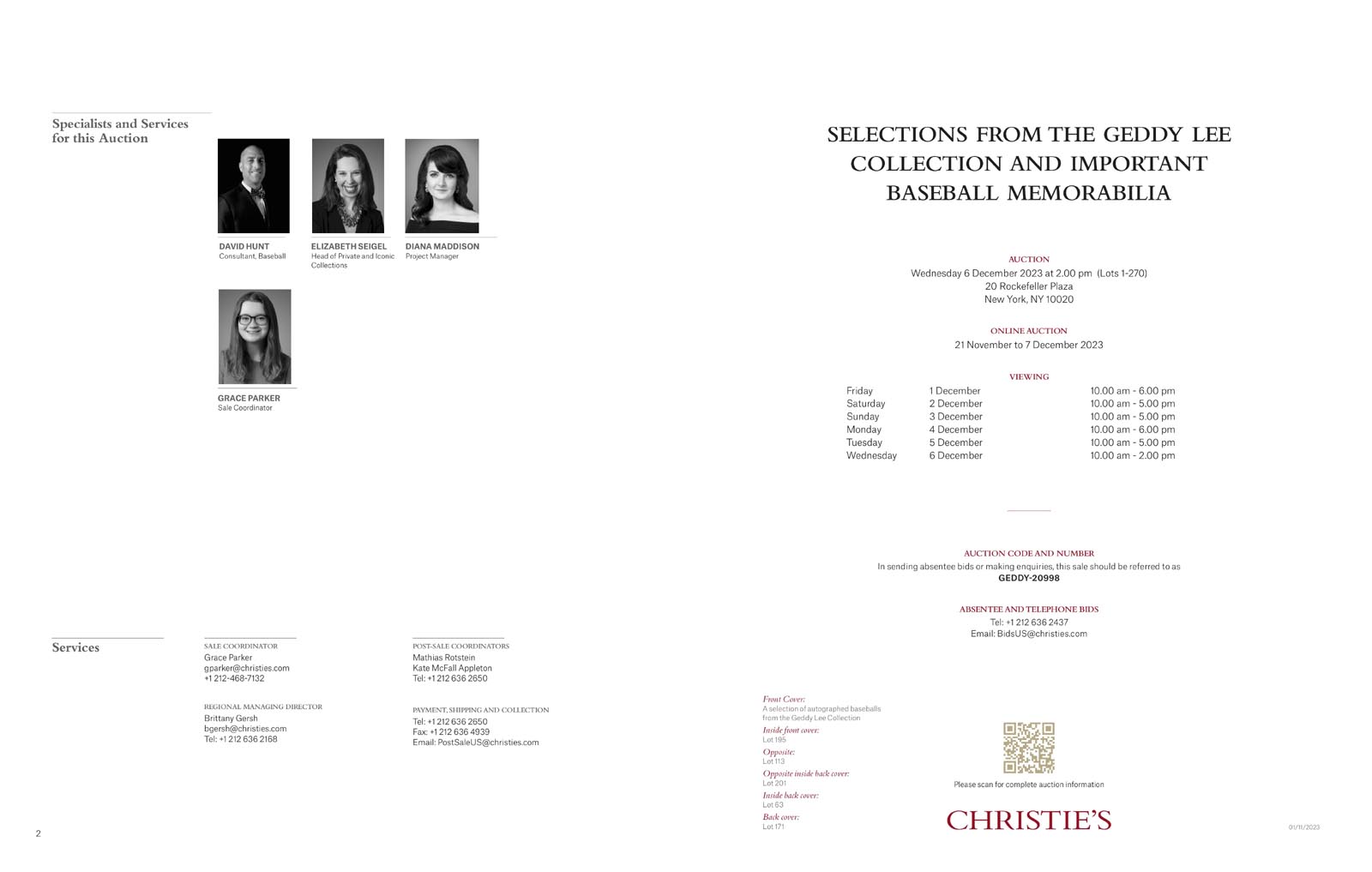 Selections From The Geddy Lee Collection And Important Baseball Memorabilia