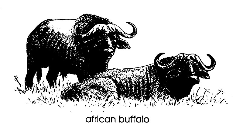 Through the glasses you could just make out the line of a dark back sloping to a large head, and that tragic horn protruding up and back. Though we watched fixedly for quite some time, he wasn't moving, and that was all we would see of this rhino. But even that was fortunate enough, as in my whole time in Africa I never saw another, which is not surprising as there are reckoned to be less than a thousand left, and those must be particularly wary and evasive to have survived the greedy poachers.
