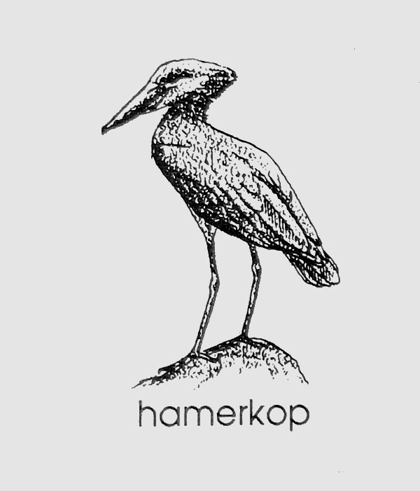 Leafless, dead-looking thorn trees sometimes clustered around a dry rocky riverbed, and there we would see a few giraffes and baboons. An occasional hyena loped across the plains, and I loved to see the pretty black and grey Secretary Birds stalking their prey in the grass. It is the only bird of prey which doesn't hunt from the air, but simply by walking around. In fact they seem to fly only reluctantly, striding around on their long legs and picking snakes and rodents out of the grass.