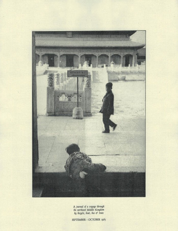 I cut an ad out of "Bicycling" magazine, an ad for a company called "China Passage" who offered cycling tours of China, I put it up on the "happy mirror", and it made a nice dream during those cold white afternoons of staring at stubborn sheets of blank paper. Like any busy person, I like to have my peaceful fantasies - sailing around the world, skiing across Norway, an African safari, spending a year on a Caribbean island, living in a cave in Tibet - stuff like that. "Someday" stuff.